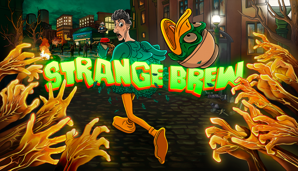 Strange Brew is a 3D action platformer with an arcade feel. Risk death as you dodge and dash to the safety of the next MoonDucks coffee shop. Activate traps that cause blood and feathers. Test your reflexes to avoid the relentless zombie onslaught.